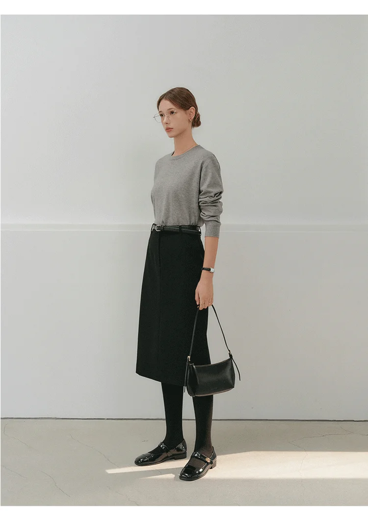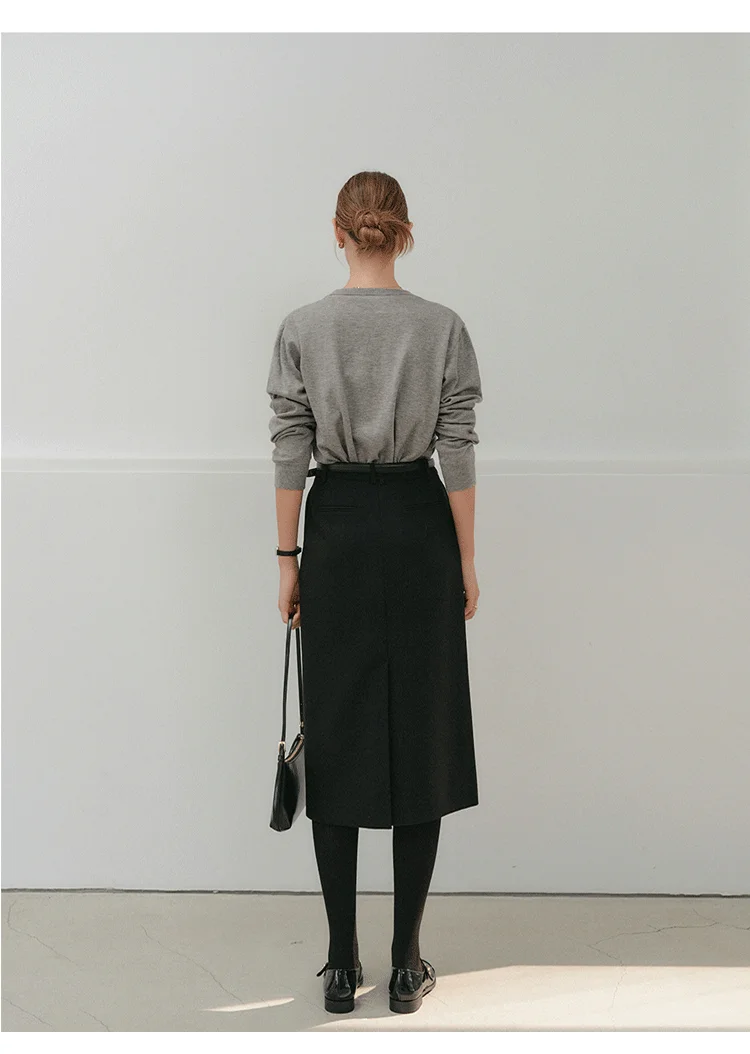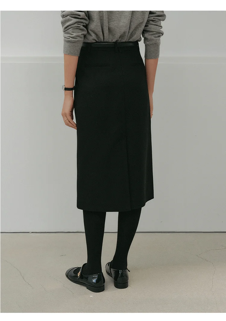 Commute Woolen Wrap around Skirt mid Length Straight Cut Profional Looking Office Skirts for Women Autumn Winter New Arrival