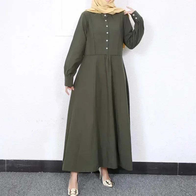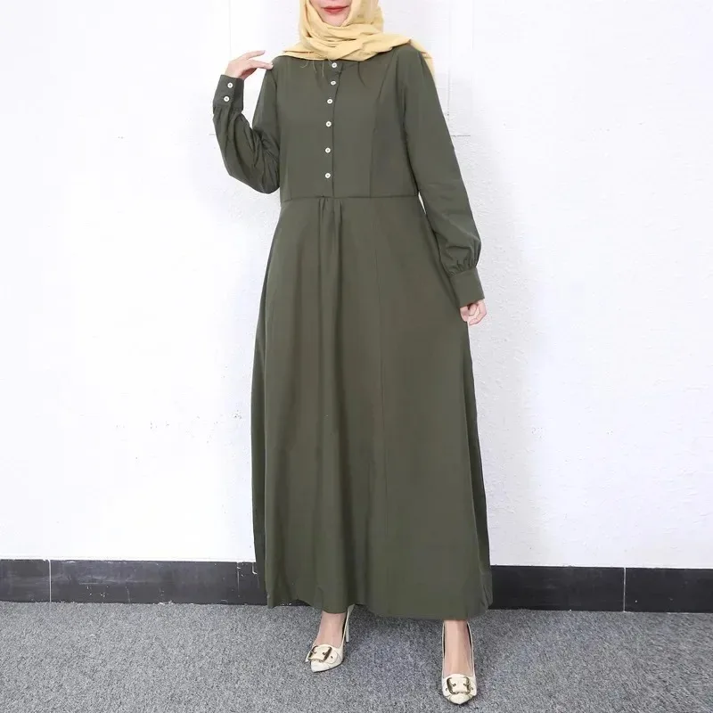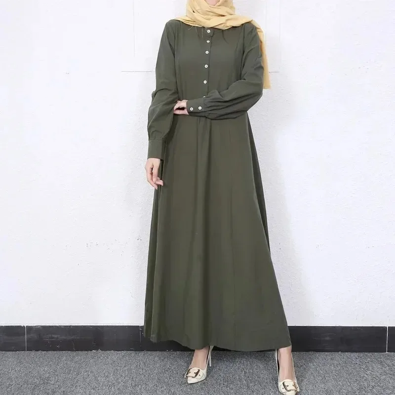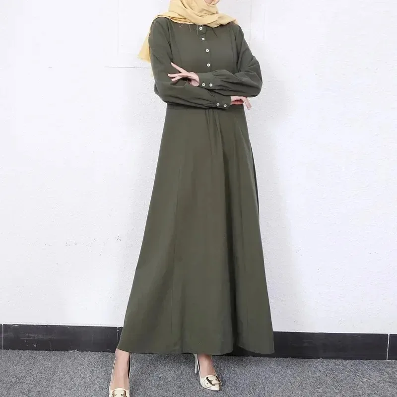 Dubai Turkey Islam Kaftan Clothes Muslim Abaya Retro Solid Color O-neck Dress Dubai Muslim Pullover Casual Europe America Dress