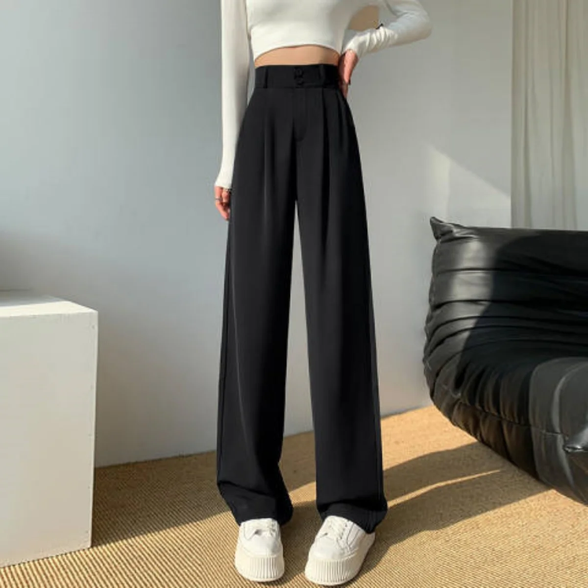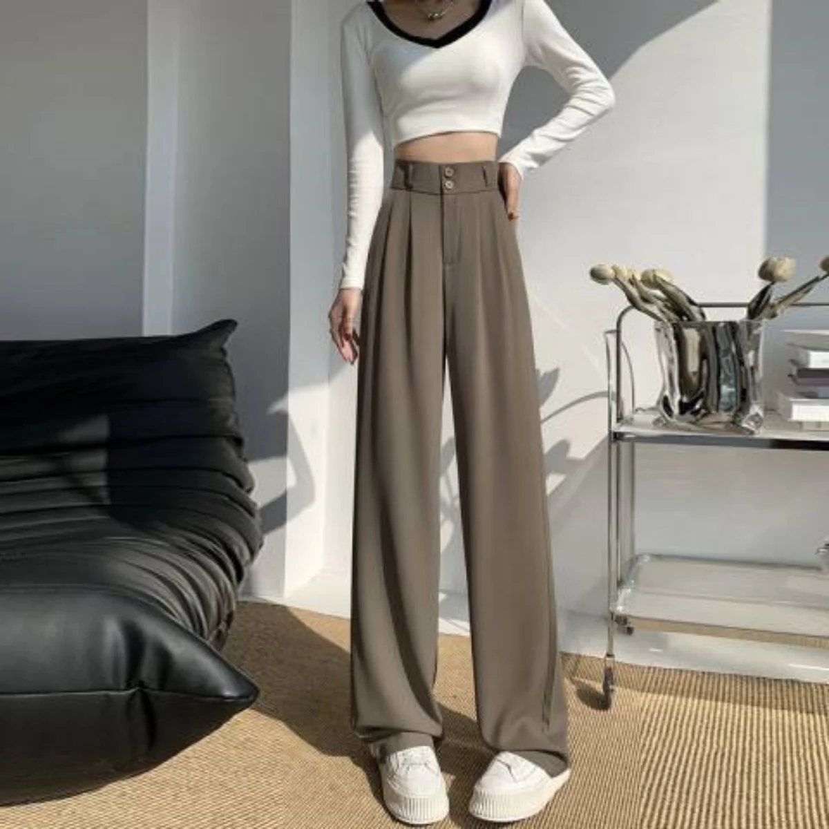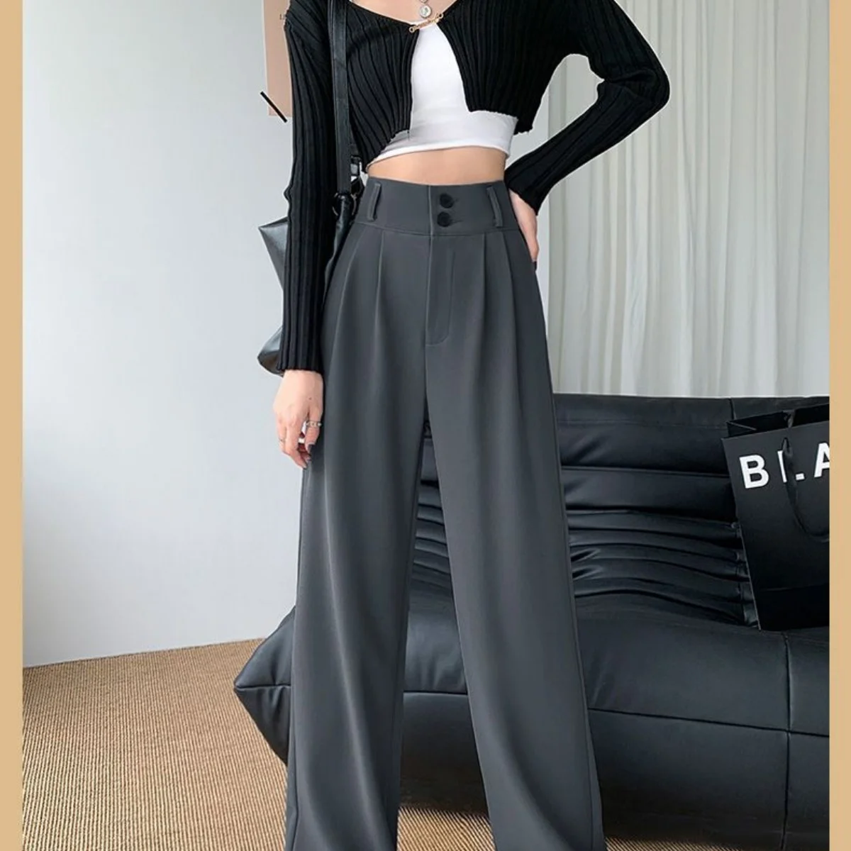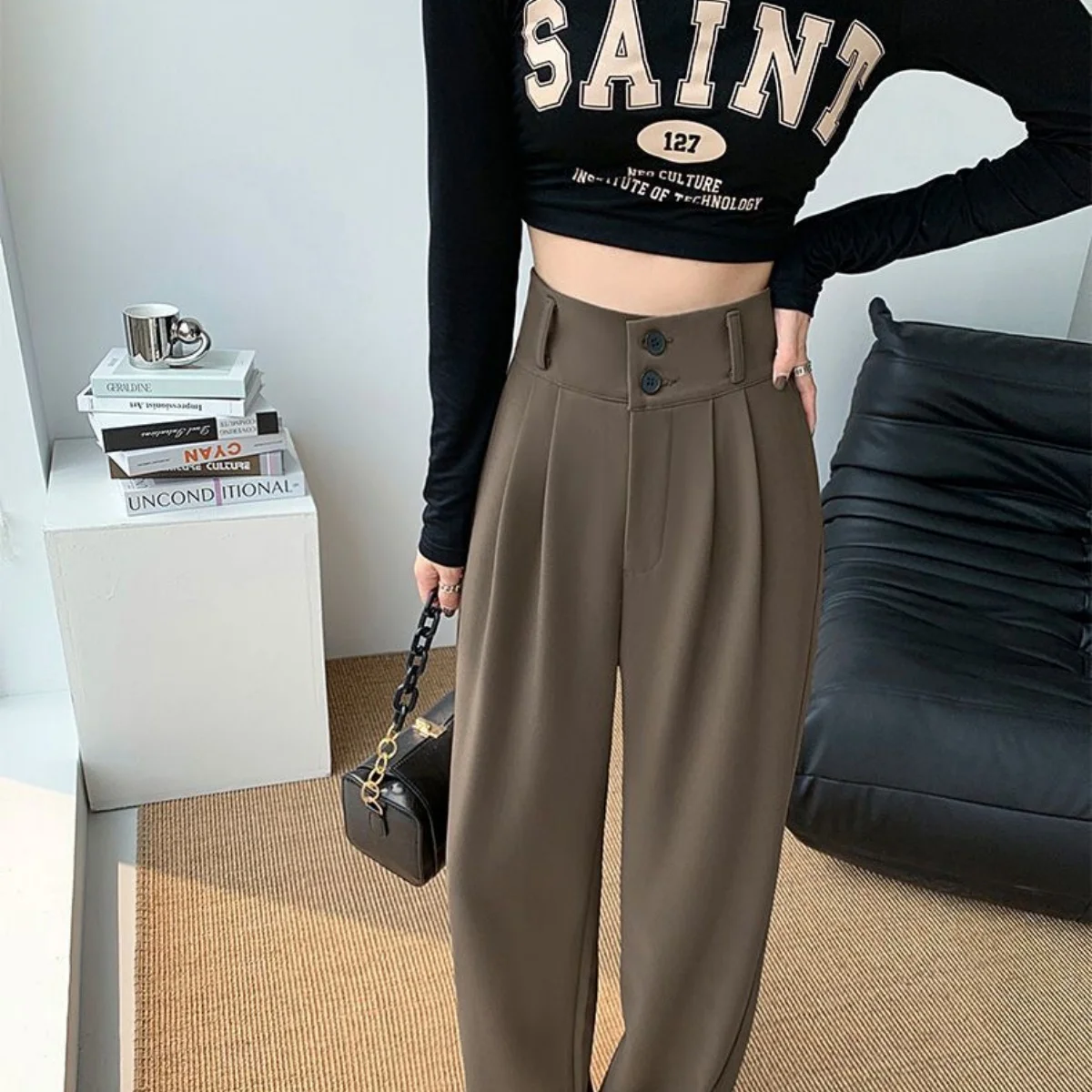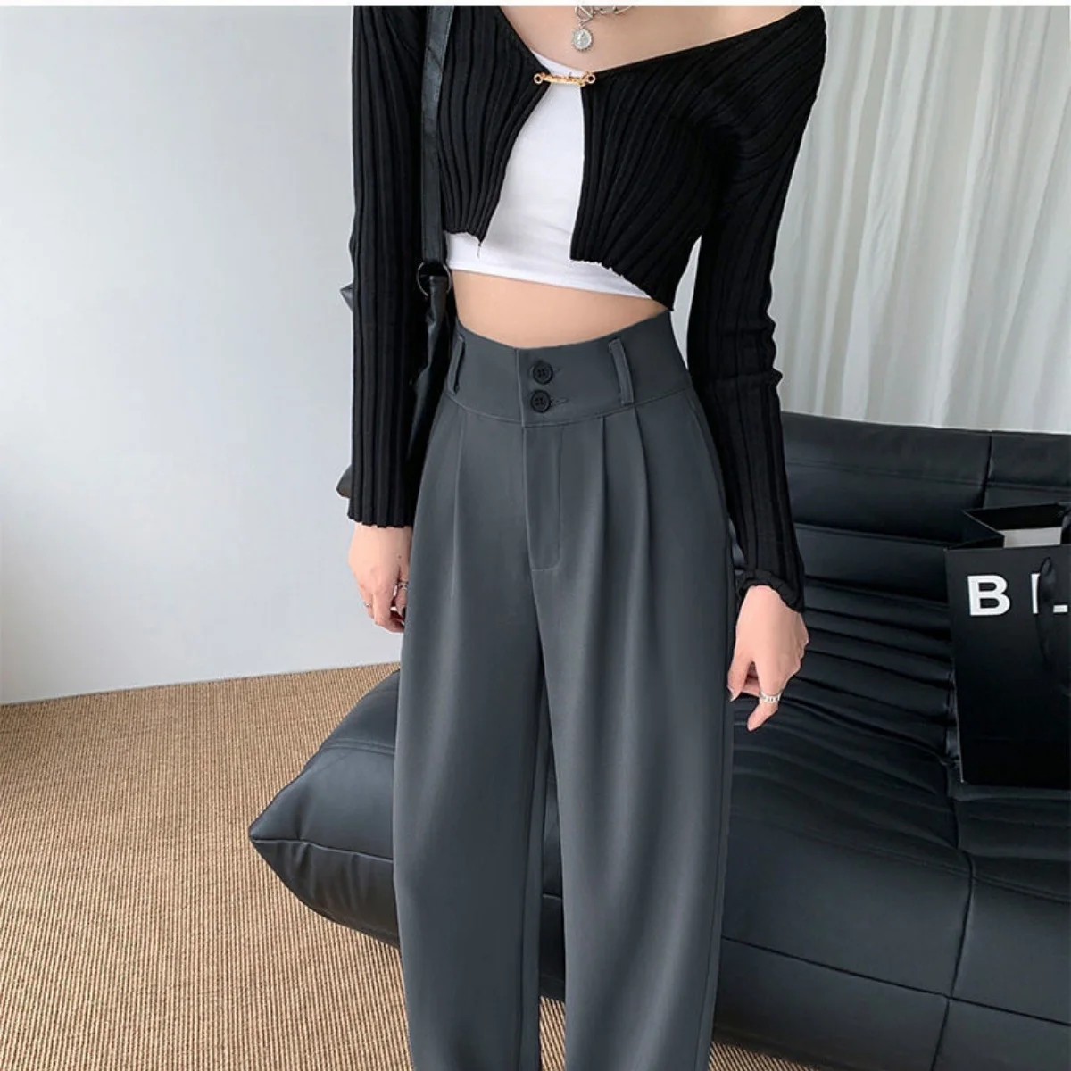Elegant Ladies' Suit Pants High Waist Fashion Black Zipped Button Office Summer Leisure Women's Loose Straight Formal Trousers