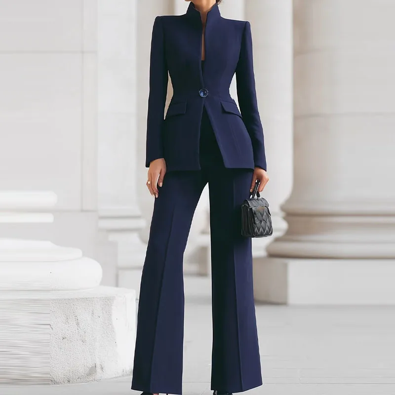 Elegant Long Sleeved Blazer+Pants Suit Autumn Simple Solid Color Commuting Outfit Women's Temperament Slim Fit Professional Set