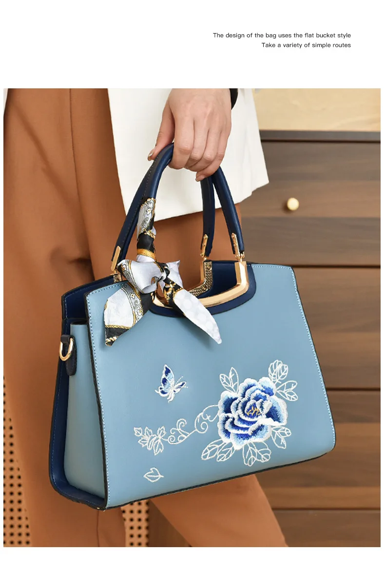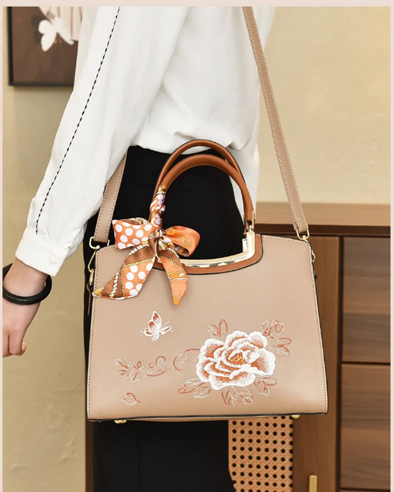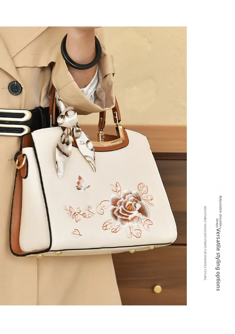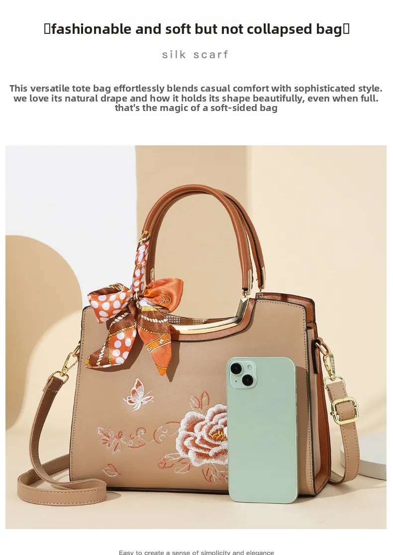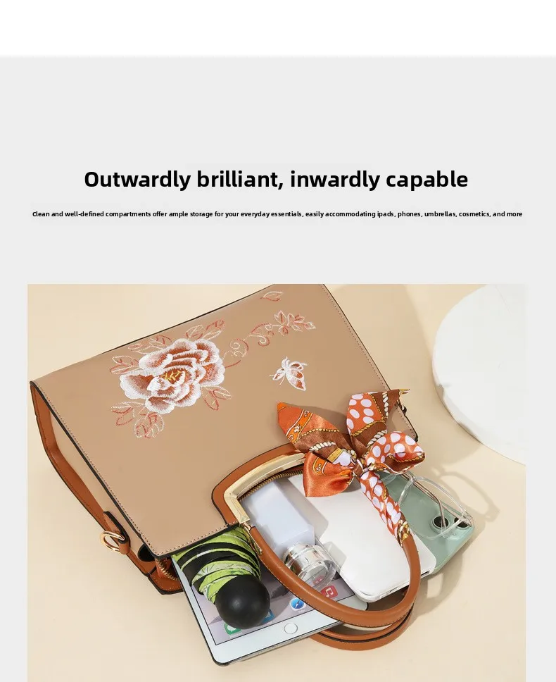 Large Capacity Women's Handbag Mother's Day Gift Bridal Bag New Bride Bag Artistic Chinese Style PU Leather Tote Bag